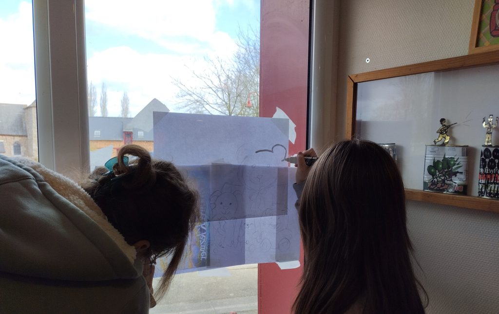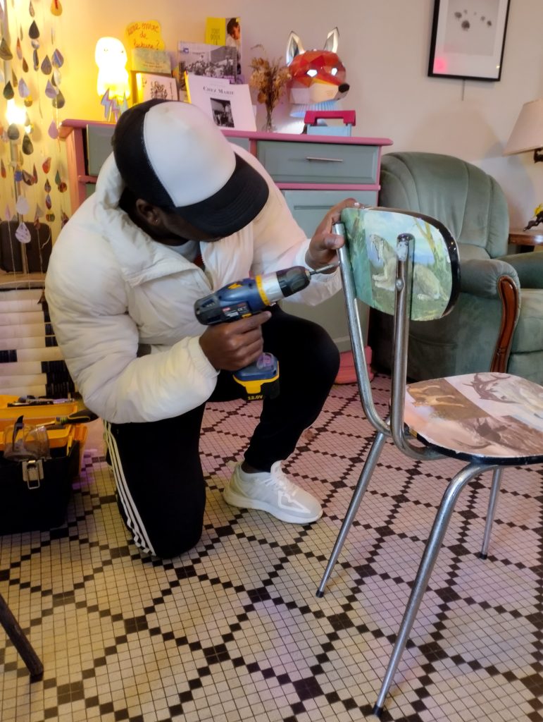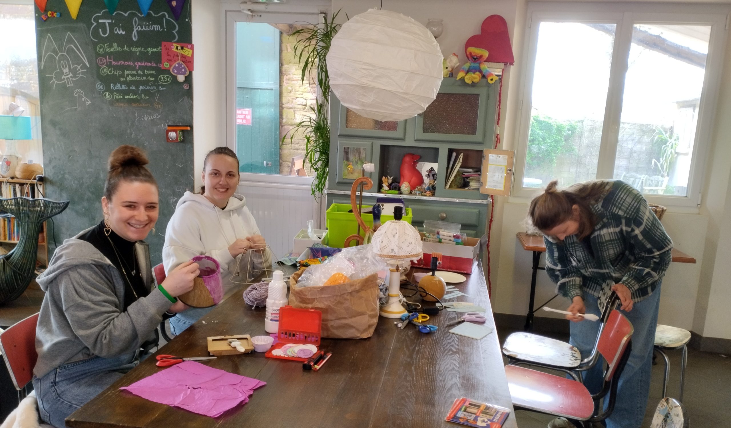 Ils ont décoré les vitres via des pochoirs et des dessins, cuisiné (crêpes, tarte aux pommes, bubble tea, burger frites), réparé des meubles ( tables, chaises), fabriqué des badges de soutien pour le café Saperlipopette, décoré des lampes.